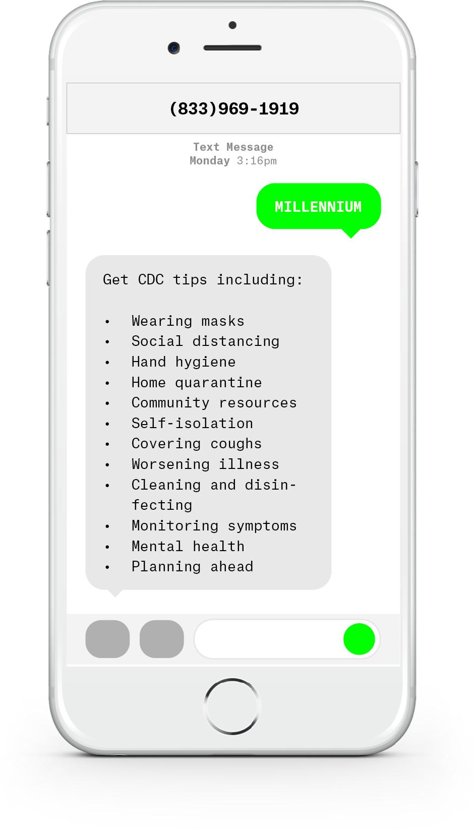 Millennium Physician Group, Lightbeam Health Solutions, and CareSignal are partnering to offer COVID Companion to anyone in the Millennium Physician Group community. It is a free program that offers tips and local resources about COVID-19.